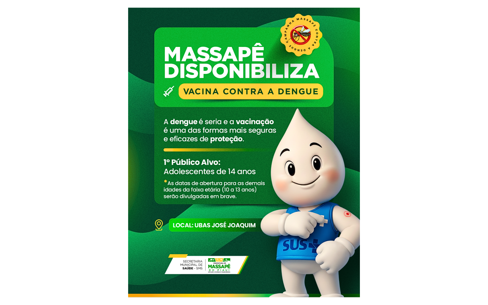A Secretaria Municipal de Saúde reforça a importância da participação das famílias massapeenses neste momento de prevenção coletiva. A vacinação, além de proteger individualmente cada adolescente, contribui diretamente para o controle da dengue em toda a comunidade.