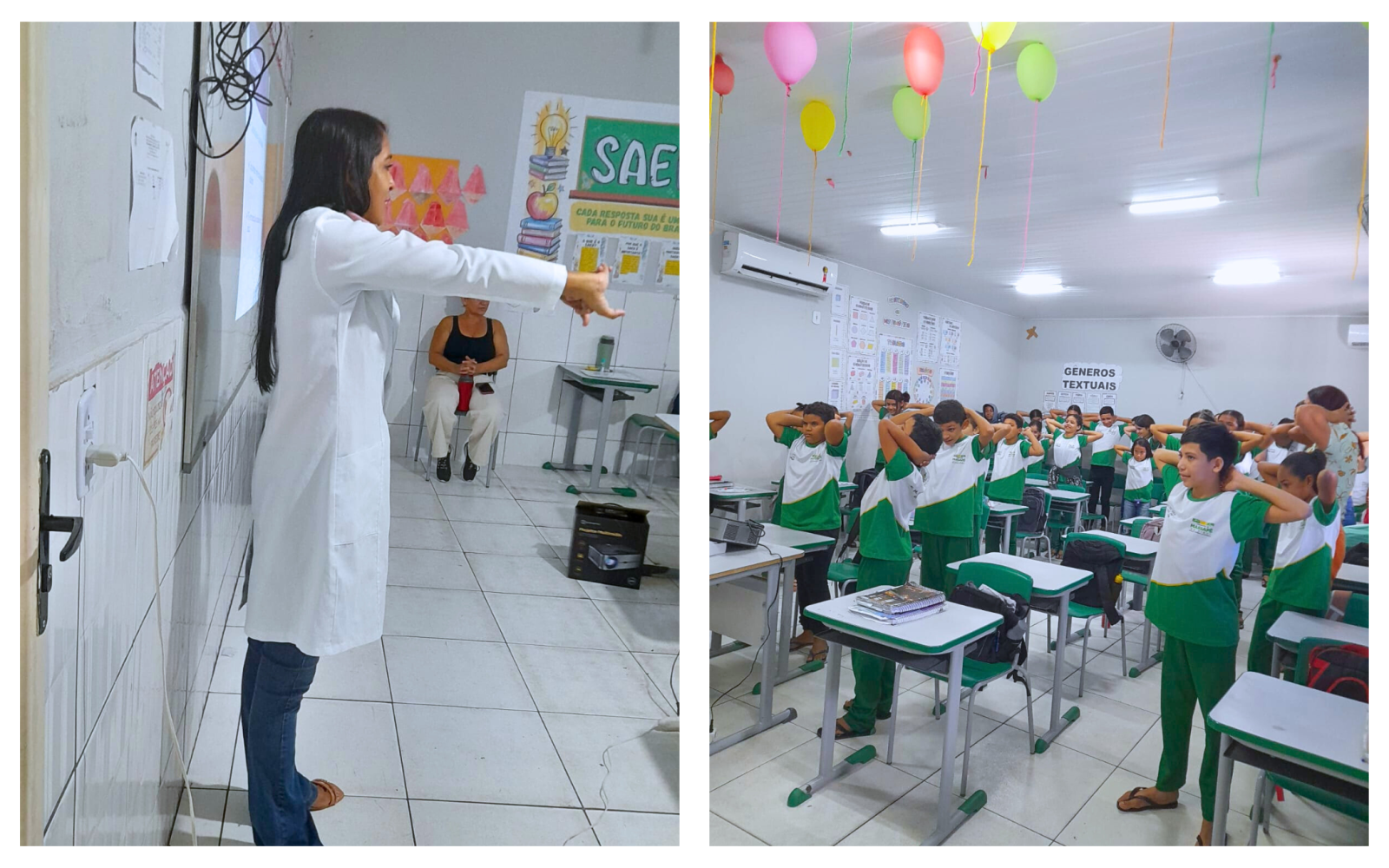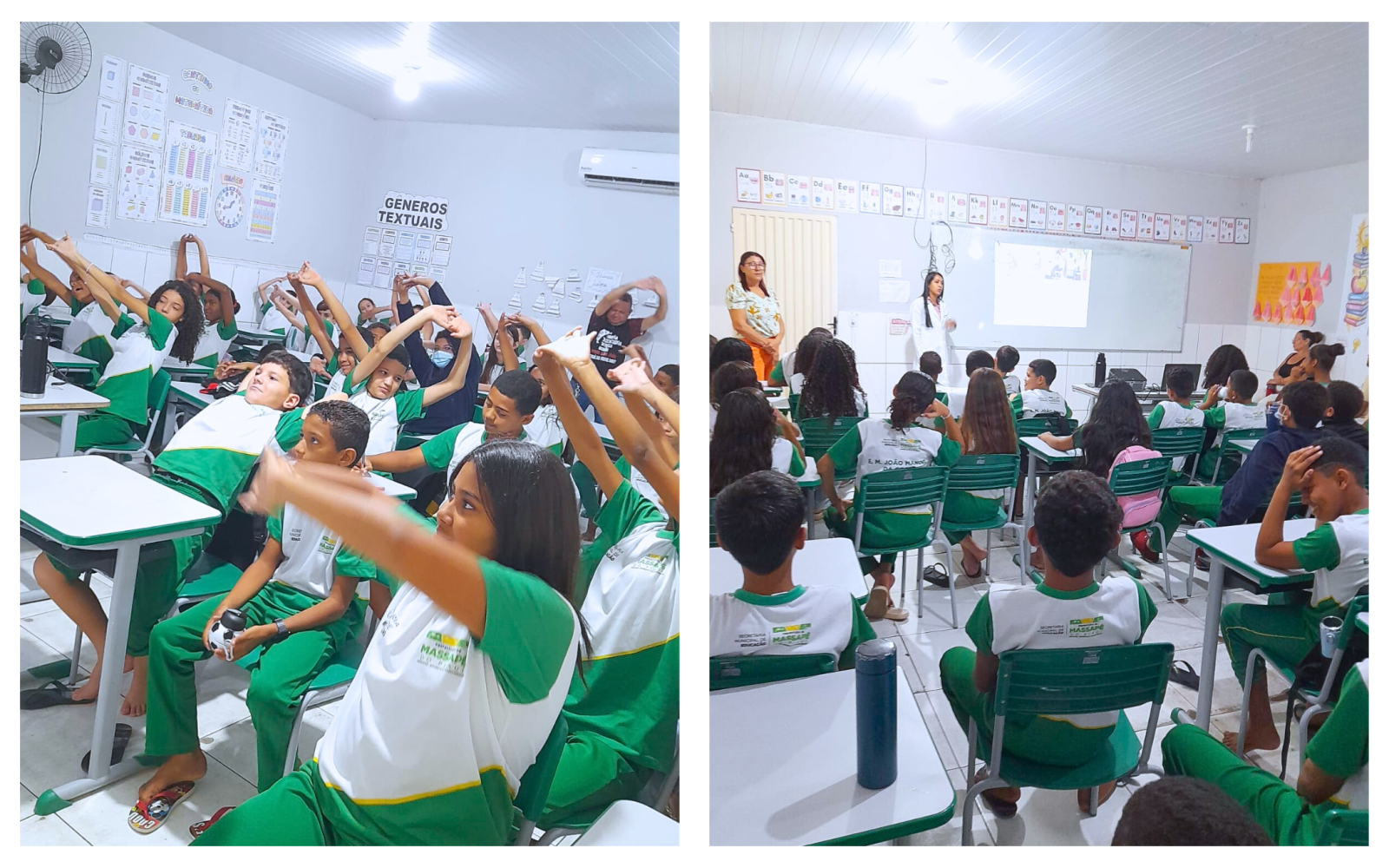 Durante a atividade, os alunos participaram de orientações sobre a importância da prática regular de atividades físicas para a promoção da saúde e prevenção de doenças, além de alongamentos e dinâmicas corporais voltadas ao bem-estar e ao movimento no ambiente escolar.