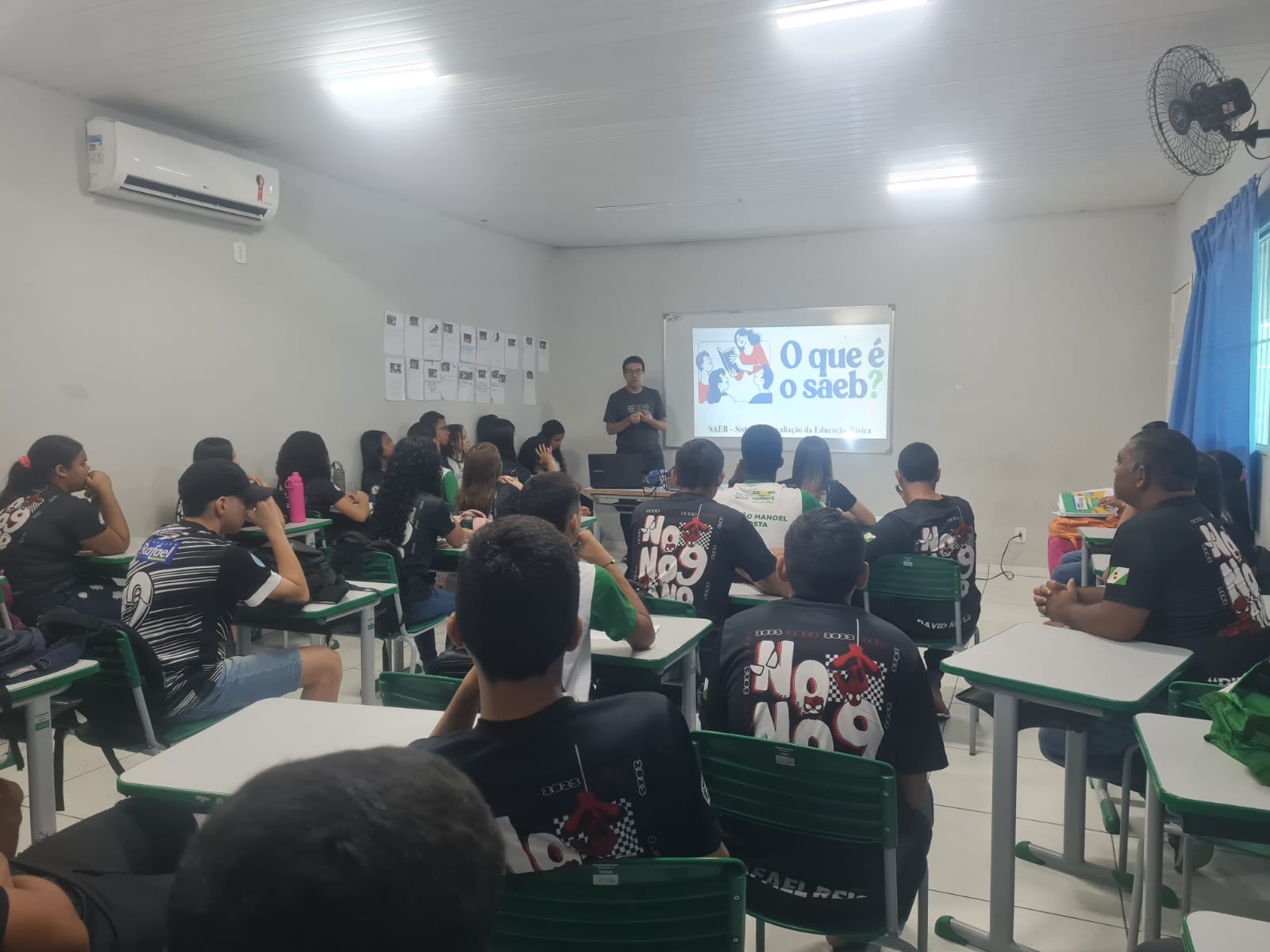 A Escola Municipal João Manoel da Costa promoveu, nesta semana, uma reunião com as turmas dos 5º e 9º anos, com foco na preparação dos estudantes para o Sistema de Avaliação da Educação Básica (SAEB) 2025. O encontro contou com a participação do professor Júnior Coutinho, que apresentou orientações e esclarecimentos sobre a avaliação, ressaltando sua importância para o desenvolvimento da educação no município.