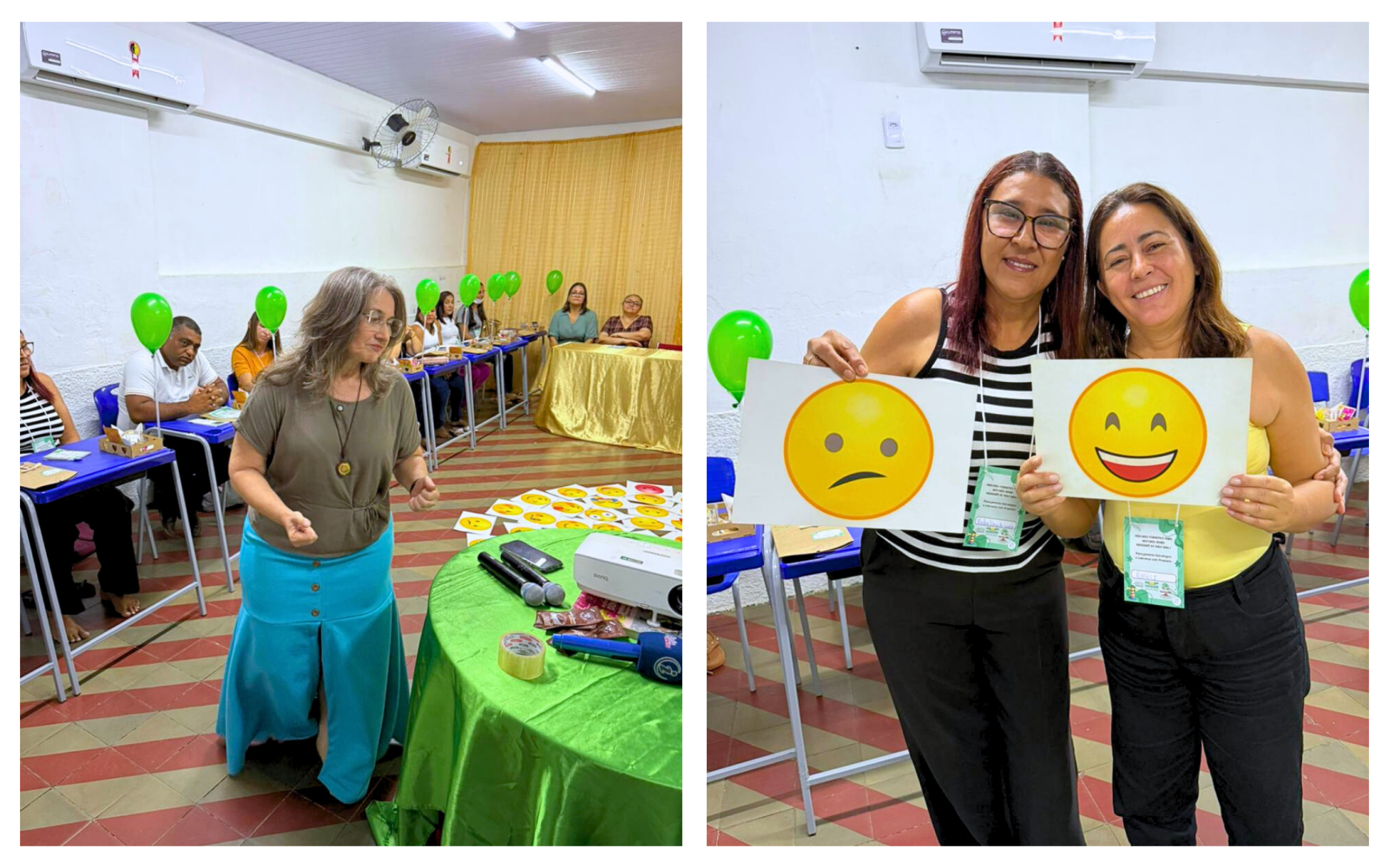 Um dos destaques do evento foi a palestra ministrada pela terapeuta integrativa Lucienne Cerqueira, que abordou o tema “Educação Socioemocional: Gestor Espelho — Eu, Nós e os Outros”, trazendo reflexões sobre liderança, empatia, convivência e o papel do educador na formação integral dos estudantes.