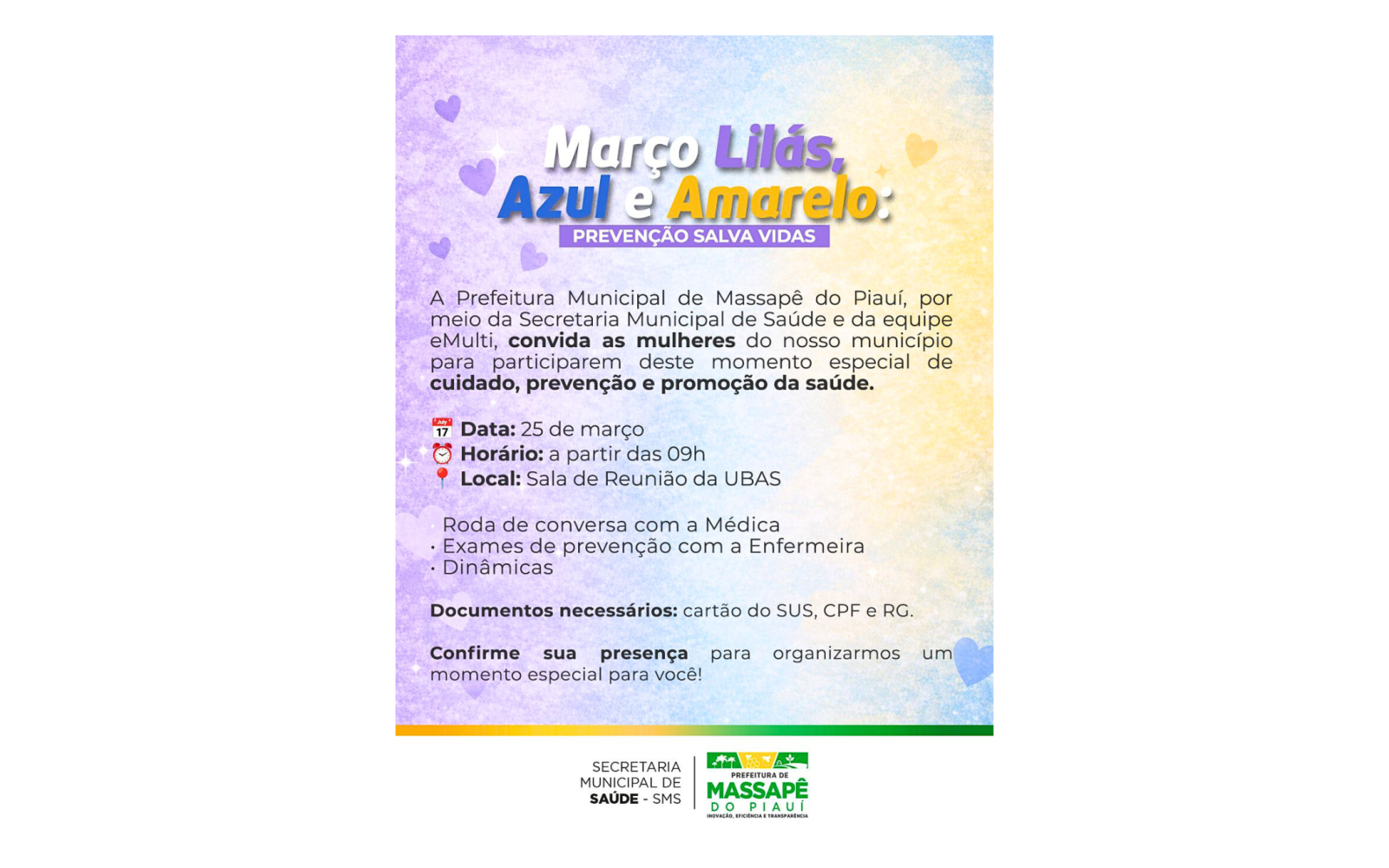 Dentro dessa mobilização, será realizada uma ação especial voltada às mulheres massapeenses, com foco no cuidado, prevenção e promoção da saúde, em alusão principalmente ao Março Lilás.